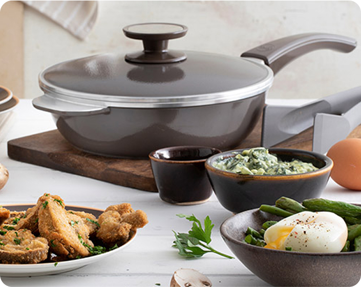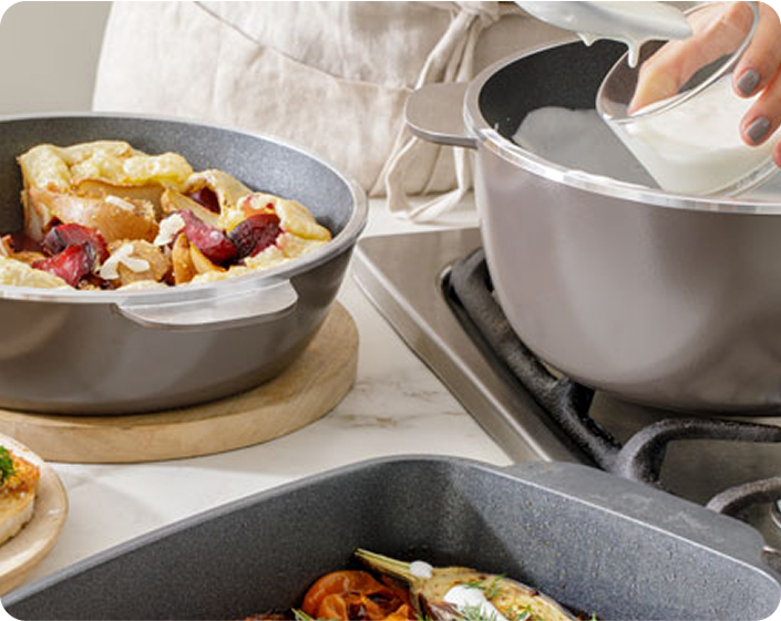 Materiales premium, diseño argentino. Pensado para acompañarte en cada comida. Esmalte vitroporcelanizado bicapa + antiadherente premium. Se limpia en segundos y luce impecable por años.
